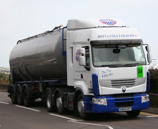 We are very keen to see Britannia Logistics on the site as they have rather a unique fleet numbering and naming policy. Pictured here is Renault Premium with fleet number 54 (In Green) and named Dew Drop and Jelly Slice. Below is another Renault Premium with fleet number 50 (In Blue) and named Marshmellow Eggs and Beans. Any help with finding where this fleet is based and contact details would be really appreciated.