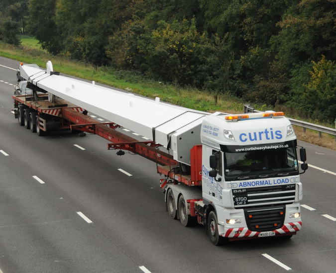 I received this photo the other day of a Curtis Heavy Haulage vehicle with a load that I would like to identify. I hazard a guess it is something to do with a wind turbine but if anyone knows for certain please email info@lorryspotting.com .Photo courtesy of and copyrighted to Phil Sears.