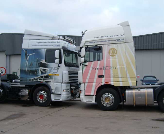 Spalding based chilled produce haulier FreshLinc have taken delivery of another large batch of DAF units. This time they are the higher spec Super Space Cab XF105 variant. Amongst the previous batch was their 75th DAF which has a special livery and is registered FL10DAF. This tranche heralds the 100th DAF into the fleet, once again with a special livery and registered FL60DAF.