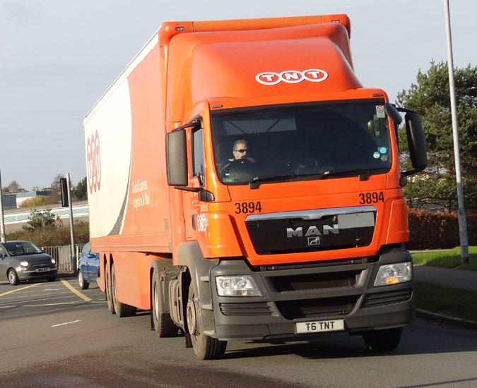 TNT have started to put cherry plates onto some of their newer vehicles and currently they have 13 such registered lorries. Pictured here is T6 TNT at Exeter services recently.The photo is courtesy of and copyrighted to John Hatch.
