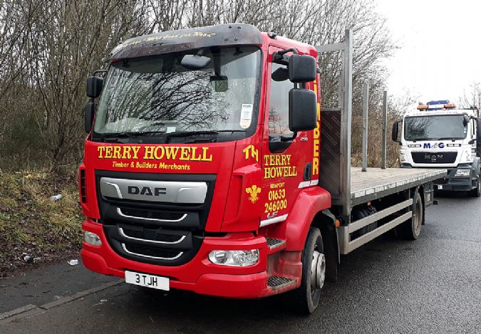 One of there flatbeds 3 TJH is seen at DAF, Rogerstone.